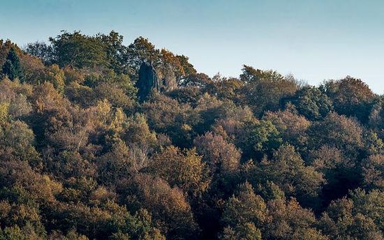 The Druidenstein is a cone-shaped basalt rock in the northern Heller Upland above the town of Kirchen on the Sieg in the parish of Herkersdorf, Altenkirchen, Germany. The basalt cone stands at a height 431 m above sea level and is about 20 metres high.