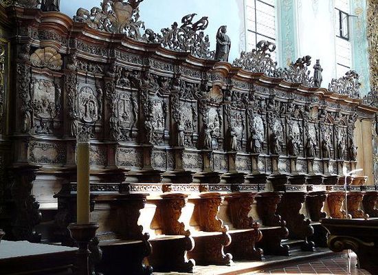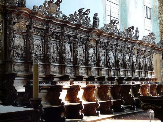 Schussenried Abbey is a former Catholic monastery in Bad Schussenried, Baden-Württemberg, Germany. It is famed for its Baroque library hall. The abbey was established in the 12th century by the Premonstratensian Order and made an Imperial Abbey in the 15th century. The monastery sustained immense damage in the Thirty Years' War. In the 18th century, the abbey began expansions in the Baroque style, but was unable to complete them. The abbey was secularized in 1803 and twice awarded during the process of German Mediatization, eventually becoming a possession of the Kingdom of Württemberg. Its second king, William I, opened a foundry on its grounds, which was followed by a nursing home. These ceased operation or moved out of the monastery in the 1990s.