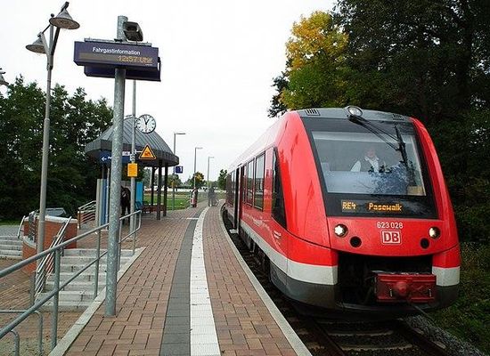 Ueckermünde Stadthafen is a railway station in the town of Ueckermünde, Mecklenburg-Vorpommern, Germany. The station lies on the Jatznick–Ueckermünde railway and the train services are operated by Ostseeland Verkehr.