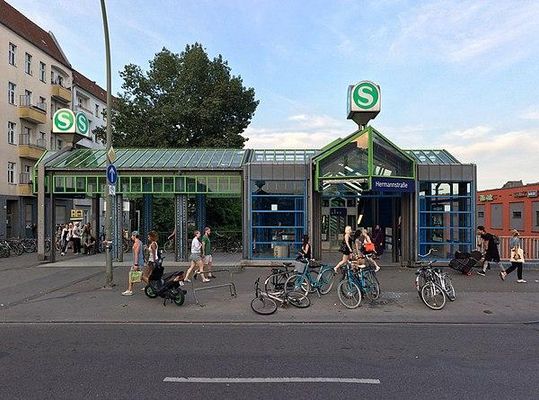 Berlin Hermannstraße is a railway station in the Neukölln district of Berlin. It is served by the S-Bahn lines , , , and and the U-Bahn line , of which it is the southern terminus. It was formerly also possible to transfer there to the Neukölln-Mittenwalde railway line, which is now only used for goods traffic.