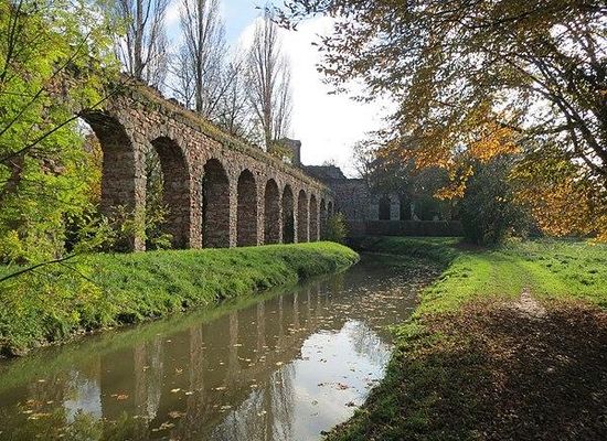 Between the cities of Wiesloch and Walldorf the river flows through the Leimbach Park linear-park close to Wiesloch-Walldorf station before flowing northwards between the Mannheim–Karlsruhe–Basel railway and Wiesloch Feldbahn and Industrial Museum.