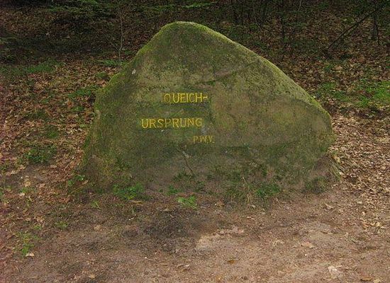 The Queich is a tributary of the Rhine, which rises in the southern part of the Palatinate Forest, and flows through the Upper Rhine valley to its confluence with the Rhine in Germersheim. It is 52 kilometres long and is one of the four major drainage systems of the Palatinate Forest along with the Speyerbach, Lauter and Schwarzbach. The Queich flows through the towns Hauenstein, Annweiler am Trifels, Siebeldingen, Landau, Offenbach an der Queich and Germersheim.