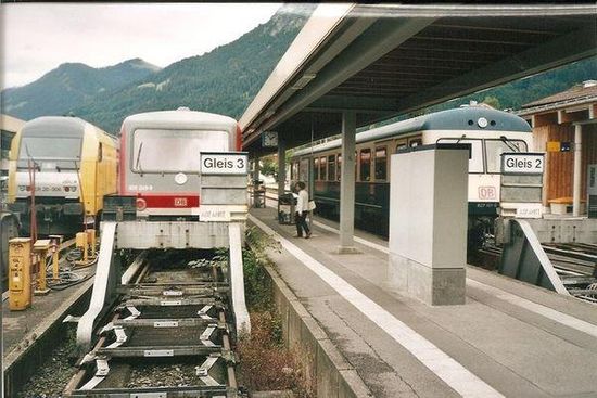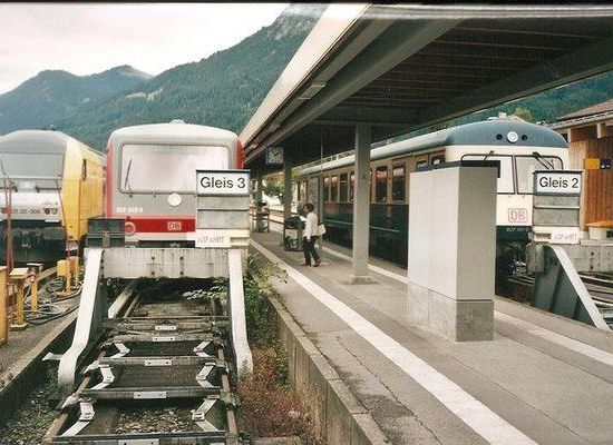 Oberstdorf station is the station of the Bavarian market town of Oberstdorf in the German state of Bavaria. It has five platforms and is classified by Deutsche Bahn as a category 3 station. The station is served by about 40 trains daily operated by Deutsche Bahn and Regentalbahn. The station is the terminus of the Immenstadt–Oberstdorf railway.