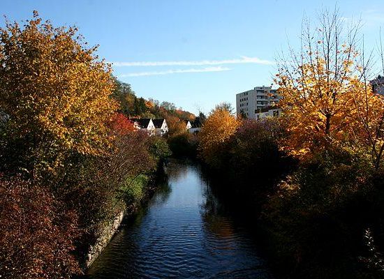 The Saalbach is a 51-kilometre-long right tributary of the Rhine running through the German state of Baden-Württemberg. The river source is in the Kraichgau region near the city of Bretten, formed by the confluence of the rivers Weißach and Salzach. It then flows through Gondelsheim to the northwest, then through Bruchsal and Karlsdorf. It then turns north through Philippsburg before emptying into the Rhine.