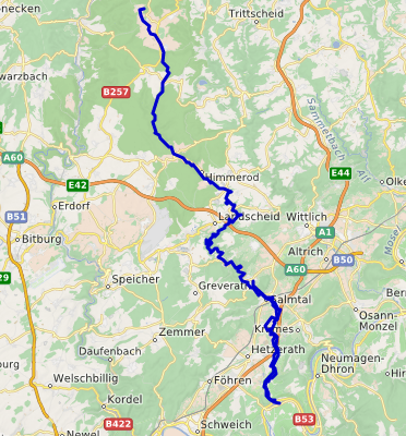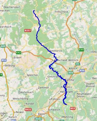 The Salm is a 63-kilometre-long river in western Germany , a left-bank tributary to the river Moselle. It rises in the Eifel, near the village of Salm, south of Gerolstein. The Salm flows generally south, through Großlittgen, Dreis, and Salmtal. It passes west of Wittlich. It empties into the Moselle in Klüsserath.