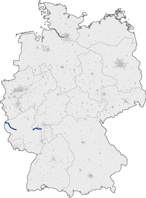 The A 60 begins at the former border crossing Steinebrück four lanes as a continuation of the Belgian A 27 from Liège. The state border runs on the 411 meter long Ourtalbrücke, which crosses the border between Belgium and Germany. This section of the route to Wittlich is also called the Eifel motorway. On the German side is behind the valley bridge a parking lot, which was originally created as a customs facility. A similar institution exists on the Belgian side on the other side of the Our. Directly behind the first connection point Winterspelt , only the northern directional carriageway is completed, over which the traffic is ever guided. The complete expansion of the section is listed in the Federal Transport Infrastructure Plan as "Further Demand". However, an expansion is not foreseeable due to the very low traffic volume throughout the route section. Thus, some smaller bridges and all overpass structures have already been built for four lanes, the three large bridges but only completed for two lanes. In some places, however, a third lane was marked to allow overtaking. Furthermore, the section is provided with yellow kilometer for federal roads.