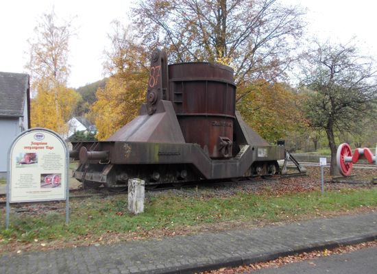 Memory of the railway car factory that was located here in Jünkerath. This car for the transport of molten iron was built in Jünkerath and brought back here in 1966.