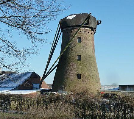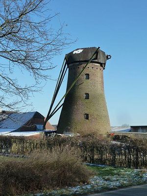 Since the end of the 18th century there was a post mill here, but it burned down in 1860. A new brick mill of the round stone mill type was then built. It was in operation as a flour mill until 1948. Then decay set in. Eventually, the mill was restored and given a re-sail. However, holiday homes were built in the mill so that the mill is not able to grind.