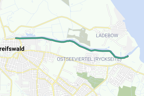 As the westerly winds presented unfavorable conditions for outgoing ships, it was not possible to sail under their own power and the shallow water meant that cargo could usually only be loaded in the fishing village of Wieck. For this reason, a path was laid out on the south side of the Ryck, which was used to "trek" or "tow" the ships.