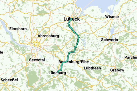 Die zweite Variante, mit ca. 105 km. Führt über den Naturpark Lauenburgische Seen von Lüneburg über Lauenburg und Ratzeburg nach Lübeck.
