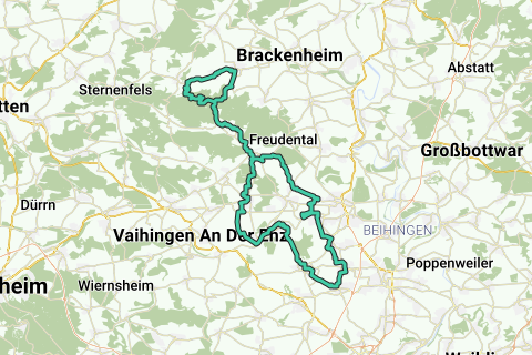 Von Möglingen über Markgröningen Unterriexingen Oberriexingen Sershein Hohenhaslach Spielberg Ochsenbach zum Katzenbachsee nach Zaberfeld. Zurück über Kleinsachsenheim und Burg bei Unterriexingen