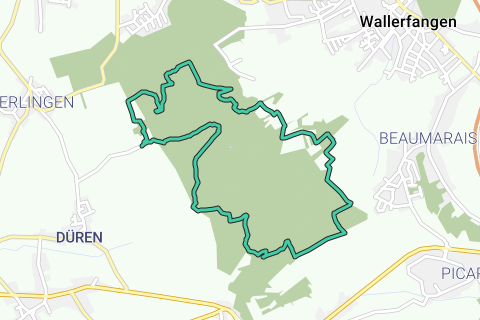 Discover the Vauban Trail in Saarland, where you can enjoy the beauty of nature on a 12.1-kilometer circular hike. This moderately difficult route takes you through an environment largely free of cars, away from urban areas. With an elevation gain of 306 meters, it offers varied views and an authentic nature experience. Along the way, you will encounter fascinating sights such as the Saarlouis-Düren airfield and the Humburg. The path is well marked and leads you mostly over unpaved trails. Leave everyday life behind and enjoy the tranquility of nature on this inviting hike that gives you the opportunity to take a deep breath and fully experience the landscape.