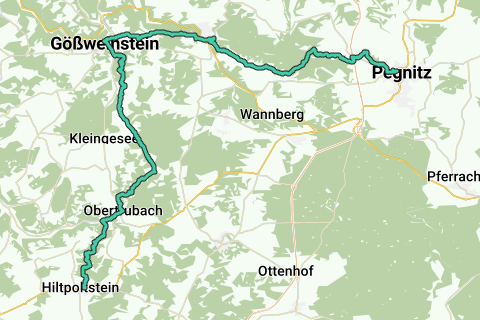 Experience the impressive nature along the Jakobsweg Fränkische Schweiz, which takes you through the picturesque landscape around Burg Hiltpoltstein. With a length of 37.1 kilometers and an extremely difficult level of difficulty, you will challenge not only your endurance but also your determination. On this route, you will conquer a total of 979 meters of elevation and enjoy breathtaking views. Discover attractions such as the majestic Burg Pottenstein and the historic Kloster Gößweinstein. The route is well marked and mostly free of traffic, allowing you to fully enjoy the tranquility of nature. The majority of the route follows unpaved paths, which are perfect for an unforgettable hiking experience.
