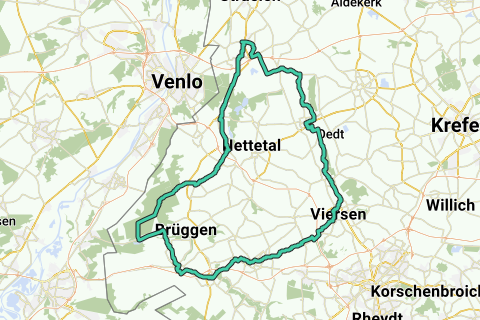 This routes incorporates the nicest roads to reach Festhalle Viersen. No car? Use public transport to reach this route. There is little (no) chance you will be seeing cars along this route. Take in the surroundings. Don't miss out on some great sights. All in all it's a great route.