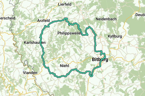 <p><a class="routeYou_embed" href="https://app.routeyou.com/en-de/route/view/4589211?utm_source=embed&utm_medium=article&utm_campaign=routeshare&navigation=external" title="Exploratory cycling tour at Bitburg - RouteYou" target="_blank"><img src="https://image.routeyou.com/embed/route/960x670/4589211-en@2x.png" style="width: 100%; height: auto;" alt="Exploratory cycling tour at Bitburg"></a></p>