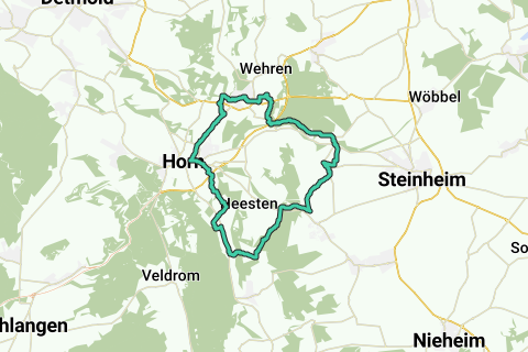 Explore Horn-Bad Meinberg over mountains and valleys. Find tranquility in nature. There's little chance you'll see many cars along this route. Discover the region along unpaved paths. Definitely stop at the state bath of Bad Meinberg. No boredom along this route. Take your time for this route.
