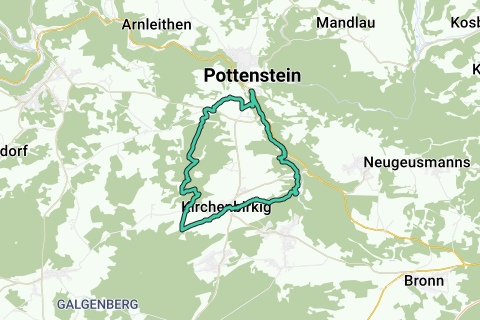 Nice to meet you, Pottenstein. You can start this route anywhere. The church (St. Bartholomew) is definitely a good starting point. Explore the region along unpaved paths. Be sure to admire the sights along this route (including the Pottenstein rock pool).