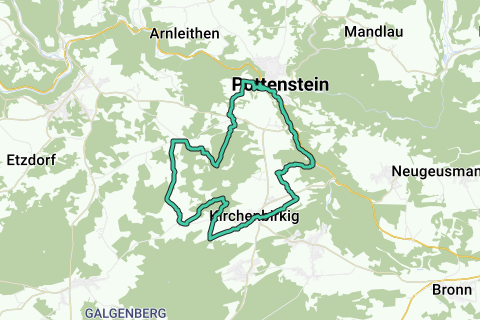 A beautiful loop through Pottenstein. It would not be an exaggeration to say that you should stop at a street café along this route. It's going to be invigorating! Explore the region along unpaved paths. There’s little chance that you'll see many cars along this route. You can start this route anywhere. The church (St. Bartholomew) is definitely a good starting point. Almost forgot, you should also stop by the Felsenbad Pottenstein.