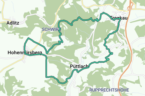 Pleasant to meet you, Pottenstein. Little chance of seeing many cars along this route. Explore the region along unpaved paths. On a humid summer day, the castle (Schloss Trockau) offers a welcome fresh break (when open). Enjoy in the square! A route where you definitely won't get bored.