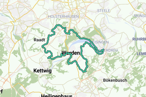 Pleasant to meet you, Essen. Immerse yourself in nature. This route leads along the most beautiful paths through the Ruhr heights. Discover the region along unpaved roads. Little chance you will see many cars along this route. This route can be perfectly started at the station (Subway station Messe West/South/Gruga). Discover a wonderful monastery along this route: Kloster Werden. Combine contemplation and sportiness on this route along St. Ludgerus Church. You can stop by this church. During this route, you will see a beautiful castle (Schloss Baldeney). There's little to add to this excellent route.