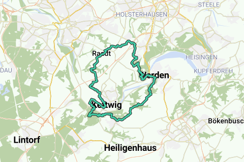 Pleasant to meet you, Essen. You ride your bike along an impressive building: Kloster Werden. Along this route, you will see a beautiful castle (Schloss Landsberg).