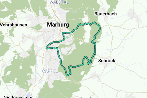 This route takes you along the most beautiful paths through the information center for foreign language research. Pleasant acquaintance, Marburg. There is little chance that you will see many cars along this route. Enjoy quiet, unpaved paths during this route. There are not excessively many taverns where you can have a drink, but there are a few. This route definitely deserves 9 out of 10 points! Take your time for this route.