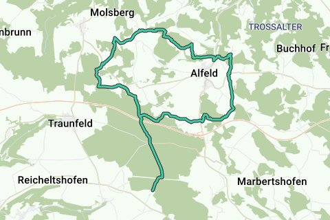 A beautiful loop through Alfeld. Explore the region along unpaved paths. There's little chance you'll see many cars along this route. Overall, a lovely route! This route definitely gets 9 out of 10 points! Take your time for this route.