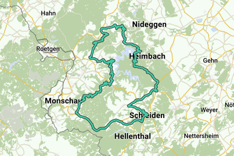 (geen dubbele lus rond Heimbach, zou + 17 km zijn)