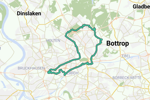 Königshardt, Haniel dump, GC-Jacobi, OLGA, gasometer, Rhein-Herne Canal, OB-Lirich, DU-Obermeiderich (Half Way stop possible at the Mercator Center), LSP Duisburg North, Green Path - HOAG route, Sternstrasse, Königshardt.