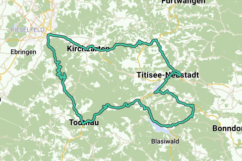 Discover all benefitsThis motorcycle ride starts and ends in Feldberg in the Black Forest. The route takes you along various villages and towns, including the pleasant city of Freiburg im Breisgau. The route goes mainly through wooded area. Highlights are the two lakes Titisee and Schluhsee. The length of the ride is approximately 120 km.