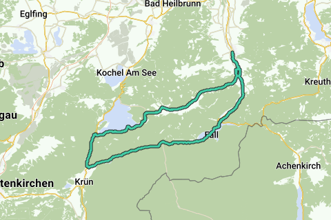 Discover all benefitsThis cycle route starts and ends in the town of Lenggries. You drive between the beautiful high mountains along the Walchensee and Sylvensteinsee. The latter is an impressive reservoir. Take enough food and drink with you, because you mainly drive through remote areas. Enjoy!
