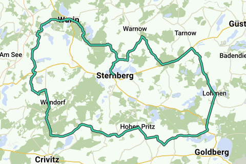 This motorcycle ride takes you through the beautiful Sternberger Seenland and surroundings. The route has a total length of 120km. You drive through a varied landscape of vast forests, meadows and idyllic lakes. Along the way you drive through numerous charming villages.