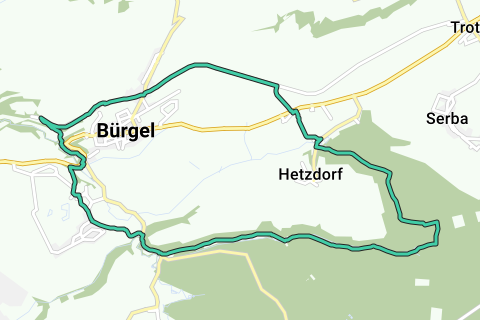 A beautiful loop through Bürgel. If you would like to reflect or "linger": stop by the monastery (Monastery Bürgel). The hiking route starts at the parking lot. This paved route is completely suitable for racing bicycles.