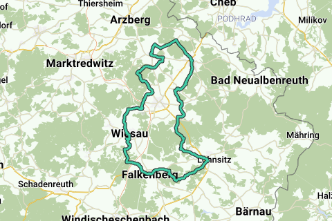 The Egergraben Cycling Path is a challenging route of 71.3 kilometers that takes you through the picturesque landscape of Bavaria. With a total of 989 meters in elevation, this lizard-shaped, well-signposted cycling path tests both your endurance and your skill. On your way, you'll pass the impressive Theres Neumann Museum and cross the Fischhof Bridge while enjoying the view of Falkenberg. This route is ideal for anyone who loves the beauty of nature and a sporting challenge.