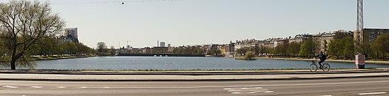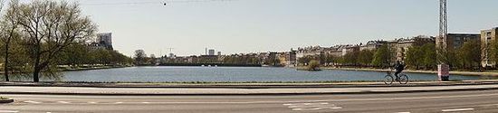 Sortedam Lake is a lake at Copenhagen in Denmark. A vertical slope was added in the area in 1929. In September 2012 it was announced that there were plans to build a floating bridge on the lake, and construction material left from digging tunnels would be placed on the eastern part of Sortedam in the Østerbrogade area. Painter Christen Købke lived near the lake in the 1830s, and painted Efterårsmorgen ved Sortedamssøen in 1838.