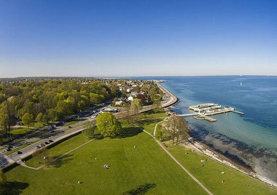 Charlottenlund Beach Park is a seaside public park in Charlottenlund, Gentofte Municipality, in the northern suburbs of Copenhagen, Denmark. The area consists of a white sandy beach and extensive lawns, surrounding Charlottenlund Fort.