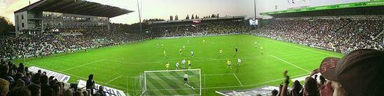 Odense Stadium is an association football stadium in the Bolbro district of Odense, Denmark. Nicknamed Folkets Teater by Jack Johnson, it has been the home ground of Odense Boldklub since the 1940s and has previously hosted select matches for FC Fyn , Boldklubben 1909, Boldklubben 1913 and Odense Boldklub Kvinde Elite during their tenures in the higher ranking leagues. With a current capacity of 15,790 , it is the fifth largest football stadium of any football team in Denmark. It is part of the sports complex, known as Odense Sports Park , owned by Odense Municipality and run by the company of Odense Idrætspark .