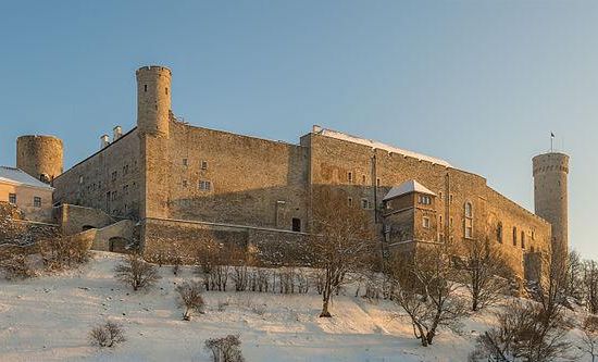 Toompea is a limestone hill in the central part of the city of Tallinn, the capital of Estonia. The hill is an oblong tableland, which measures about 400 by 250 metres, has an area of 7 hectares and is about 20–30 metres higher than the surrounding areas. In folklore the hill is known as the tumulus mound over the grave of Kalev, erected in his memory by his grieving wife.