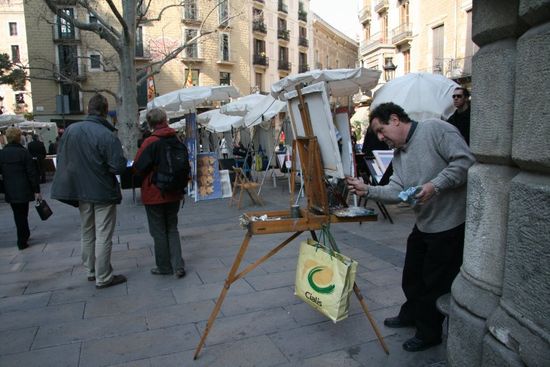 Plaça de Sant Joseph Oriol is the Mont Martre of Barcelona. Many painters are showing their artworks here.