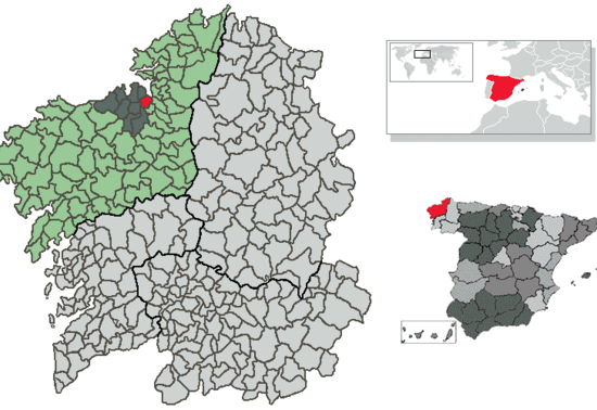 Bergondo is a municipality in province of A Coruña, in the autonomous community of Galicia in northwestern Spain. It has an area of 32.85 km2, a population of 6,413 , and a population density of 195.22 people/km2