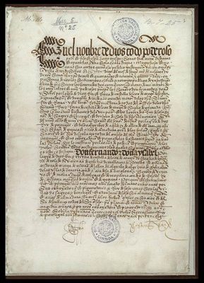 Tordesillas is famous in history and cartography for the Treaty of Tordesillas (7 June 1494). It provided a demarcation between Spain and Portugal of the newly discovered world. The demarcation line was drawn along a meridian 370 leagues west of the Cape Verde islands. The line was halfway between the Cape Verde Islands (already Portuguese) and the islands discovered by Christopher Columbus on his first voyage. You can see the treaty in the Archivo General de Indias in Sevilla.