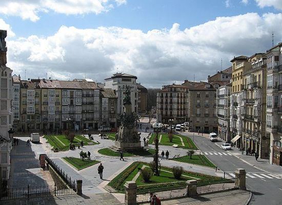 Plaza de la Virgen Blanca is one of the oldest meeting points in Vitoria-Gasteiz in the Basque Country of Spain. In the middle of it there is the monument to La batalla de Vitoria a battle which took place in the city in 1813 during the Napoleonic wars.