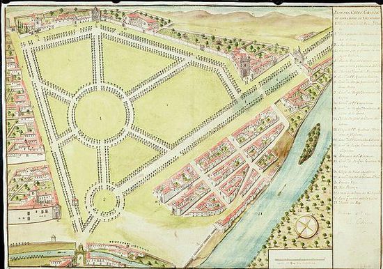 The Campo Grande is a large public park located in the heart of the city of Valladolid, Spain. It is triangular, has a 115,000 m² surface and is limited by the street Acera de Recoletos, the Paseo de los Filipinos and the Paseo de Zorrilla. Its main entrance is in the Plaza de Zorrilla, where together with a modern bill gate lies a floral shield of the city. The park is closed around its perimeter by a simple fence that runs between pillars, with doors on all sides.