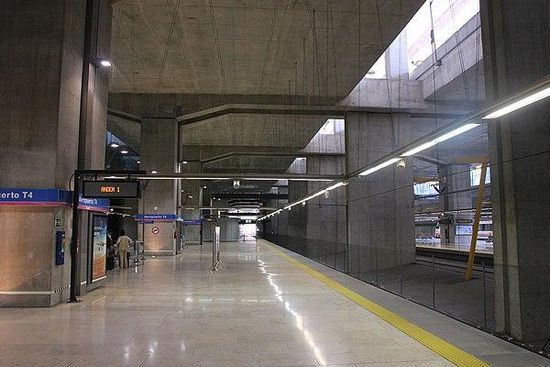 Aeropuerto T4 is a station on Line 8 of Madrid Metro and Lines C-1 and C-10 of Cercanías Madrid on the lower level of the new terminal T4 of Madrid-Barajas Airport. The metro station was opened on 3 May 2007 and the commuter rail station was opened on 22 September 2011; and presents the particularity of requiring the payment of a special supplement of €1 for users of single ticket or Metrobus, the same way it happens in the station Airport T1-T2-T3. It is located in fare Zone A.