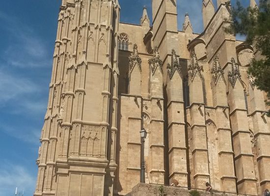 The tourist attraction of Palma de Mallorca, a stunning cathedral that looks immensely large up close! This cathedral stands at an impressive 44 meters. Walking around the cathedral feels like it takes an eternity due to the beautiful architecture that constantly distracts you. A must-visit in Mallorca!