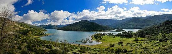 El Tranco de Beas Dam, also known as Pantano del Tranco is a reservoir across the high Guadalquivir in the Sierra de Segura range, Andalusia, Spain.