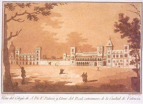 The now vanished Del Real Palace or Royal Palace was the former residence of the kings of Valencia in the «Cap i Casal» of the Kingdom, as the city of Valencia was then called. It was on the left bank of the Turia River, where nowadays Jardines del Real are. It was also known as «300 keys palace» in reference to the number of rooms it had in its heights.