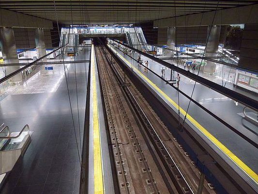 Line 10 of the Madrid Metro is a rapid transit line in Madrid that is actually the product of two formerly separate lines. Today the route begins at Hospital Infanta Sofía and ends at Puerta del Sur . Passengers must transfer at Tres Olivos between the "line 10A" segment, which covers the portion of the route south of the station, and "line 10B," which extends north to Hospital Infanta Sofía.