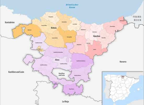 The Basque Country , also called Basque Autonomous Community , is an autonomous community of Spain. It includes the provinces of Álava, Biscay, and Gipuzkoa, located in the north of the Iberian Peninsula, bordering on the autonomous communities of Cantabria, Castile and León, La Rioja, and Navarre, and the French region of Nouvelle-Aquitaine.