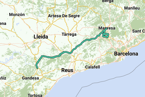 Fifth stage of the 'Volta Ciclista a Catalunya' from Ascó to Manresa. Official route comes from www.voltacatalunya.cat.
